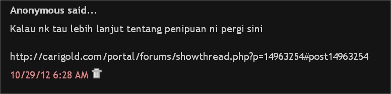 Lagi mohon pendedahan scam Pubel Kali Kong ni, cara diorang beroperasi, janji2 manis diorang dan kalau boleh macam-macam lagi scam di Malaysia. Bukan apa cuma nak bagi masyarakat kesedaran, terutama yang nak cepat kaya. Yang dah terkena tu nak buat macamana, yang penting ia dijadikan satu peringatan. Bukankah ingat mengingati dituntut oleh agama kita.